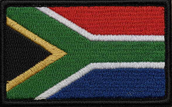 Patch bordado da Bandeira da África do Sul, ideal para personalizar roupa, mochilas, casacos ou equipamentos táticos. Fabricado em material resistente e com sistema de fixação Hook & Loop (velcro), é simples de aplicar e remover sem necessidade de costura. Mede 8 x 5 cm, destacando-se pelo design detalhado e pela durabilidade.