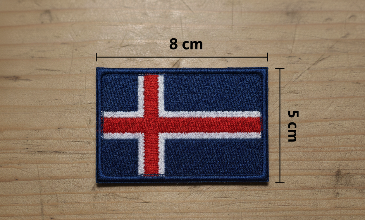 Patch bordado da Bandeira da Islândia, ideal para personalizar roupa, mochilas, casacos ou equipamentos táticos. Fabricado em material resistente e com sistema de fixação Hook & Loop (velcro), é simples de aplicar e remover sem necessidade de costura. Mede 8 x 5 cm, destacando-se pelo design detalhado e pela durabilidade.